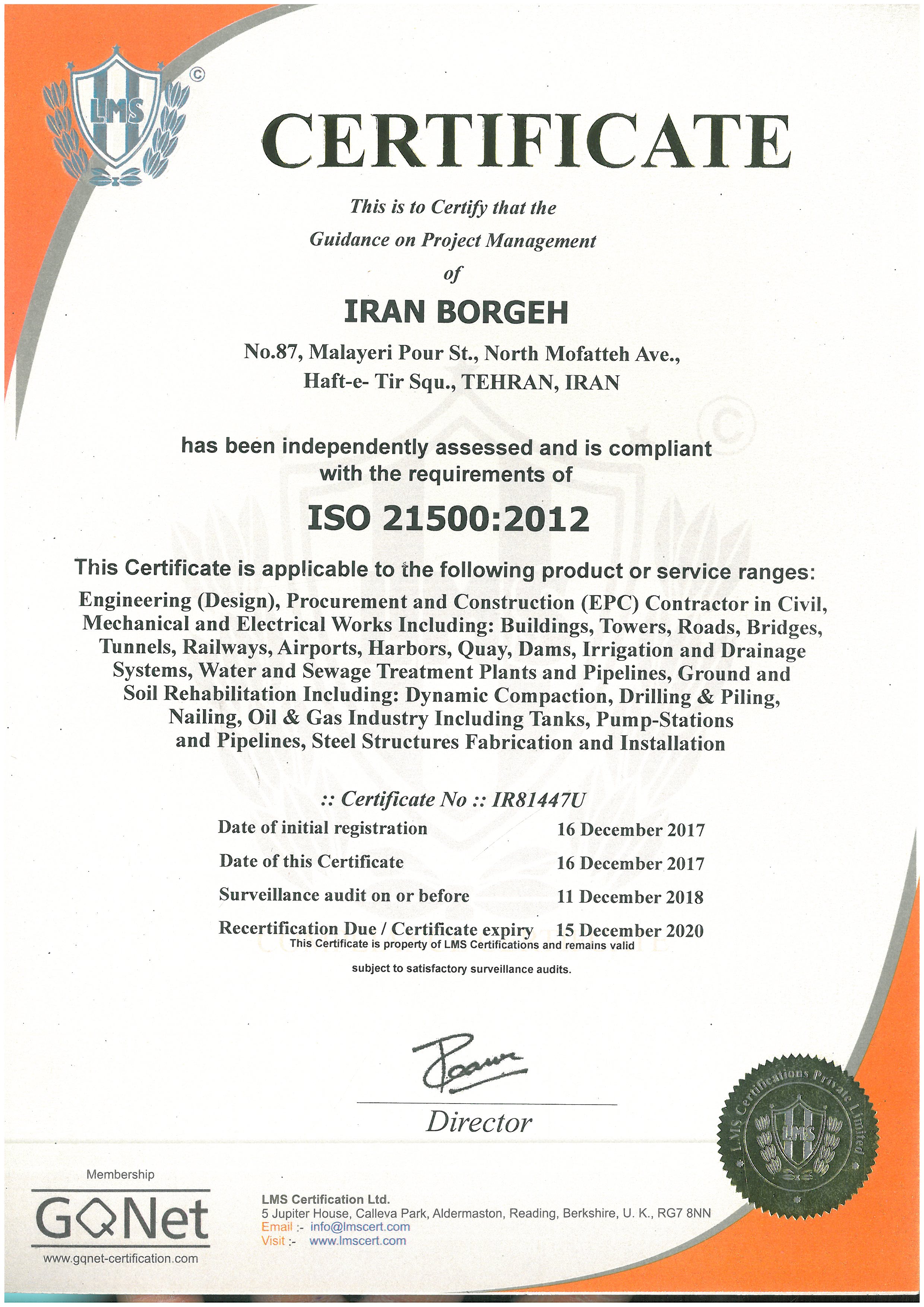گواهینامه صلاحیت سازمان مدیریت و برنامهریزی