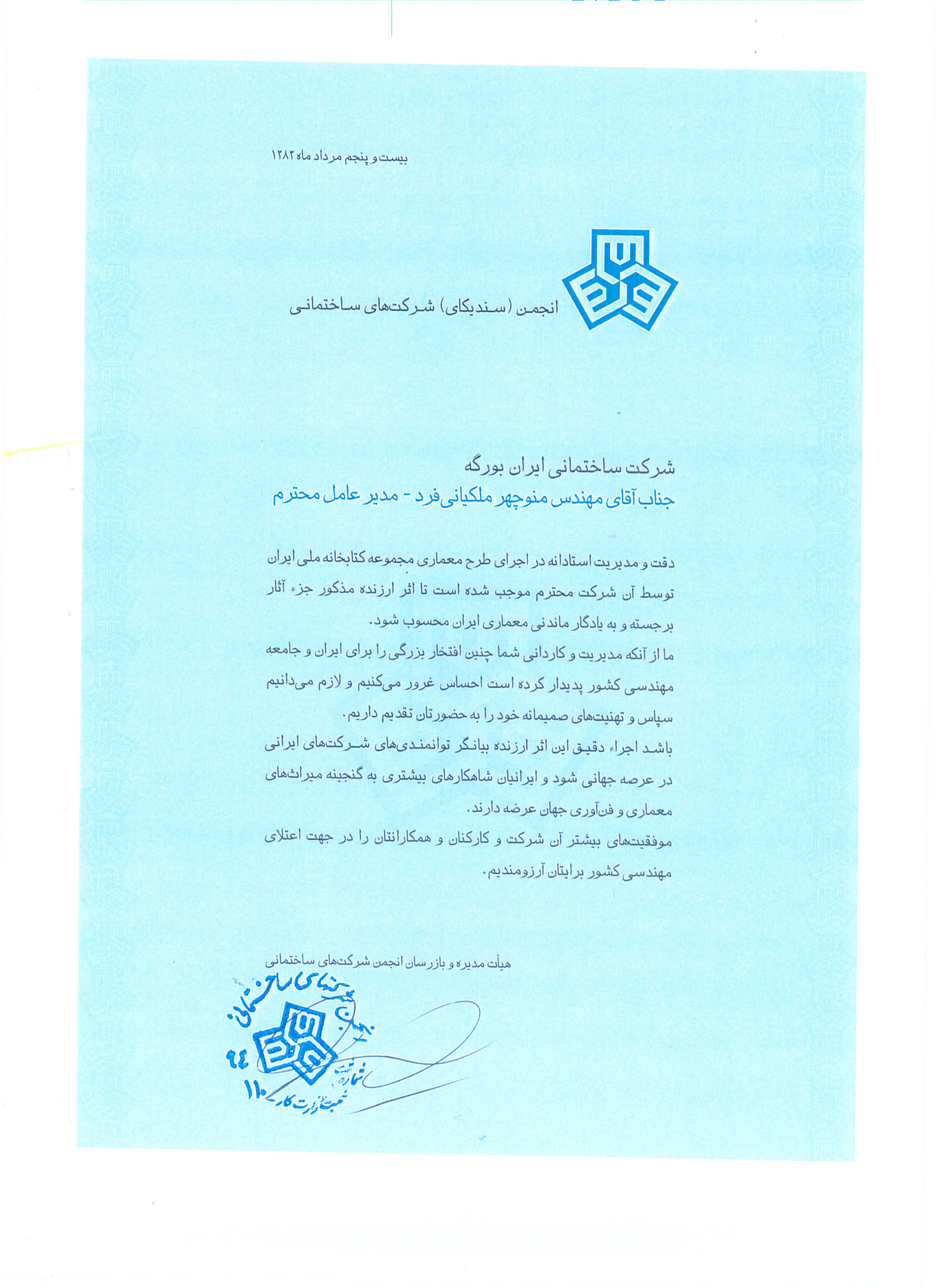 تقدیرنامه از سندیکای شرکتهای ساختمانی